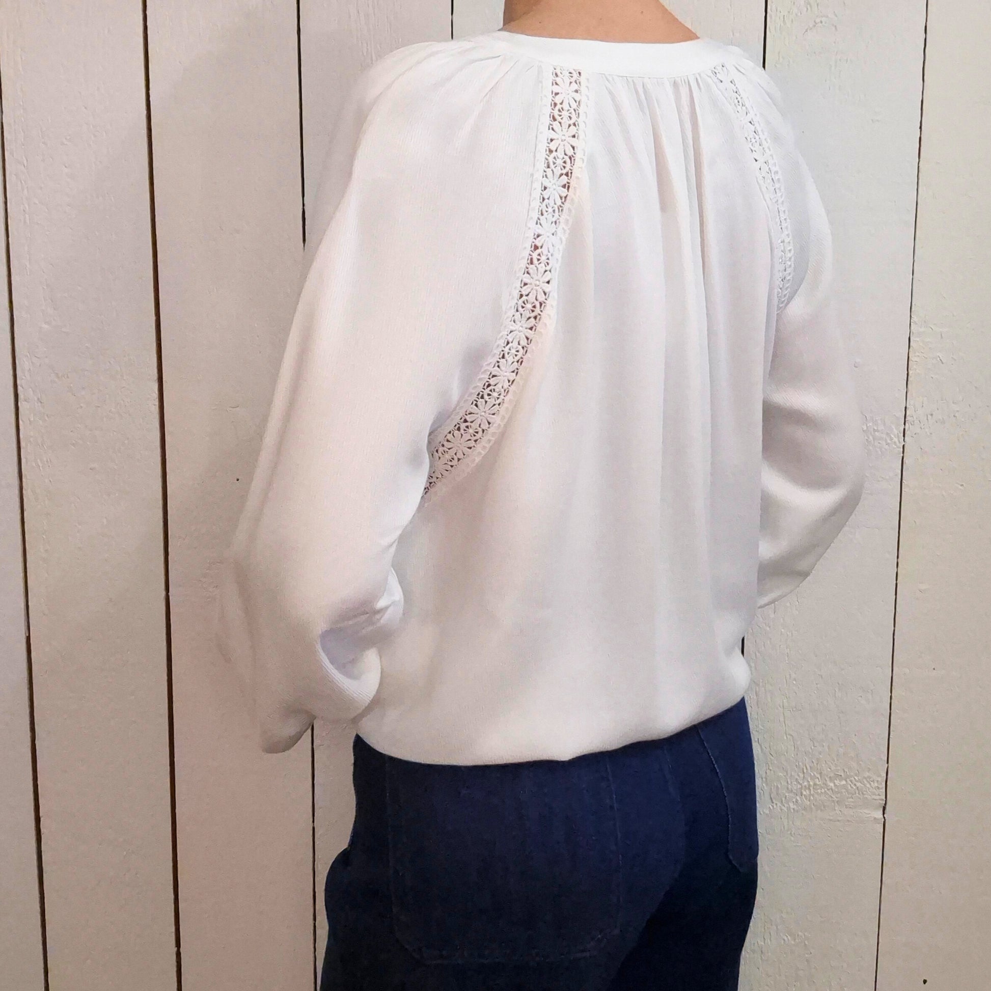 Blouse fluide et légère confectionnée en 100% coton, parfaite pour les beaux jours. Ses manches longues et son ajouré délicat vous offrent une élégance intemporelle tout en laissant respirer votre peau. Idéale pour créer des looks sophistiqués et confortables, cette pièce s'adapte à tous vos styles, du casual au plus habillé. Un basique indispensable à avoir dans votre garde-robe.