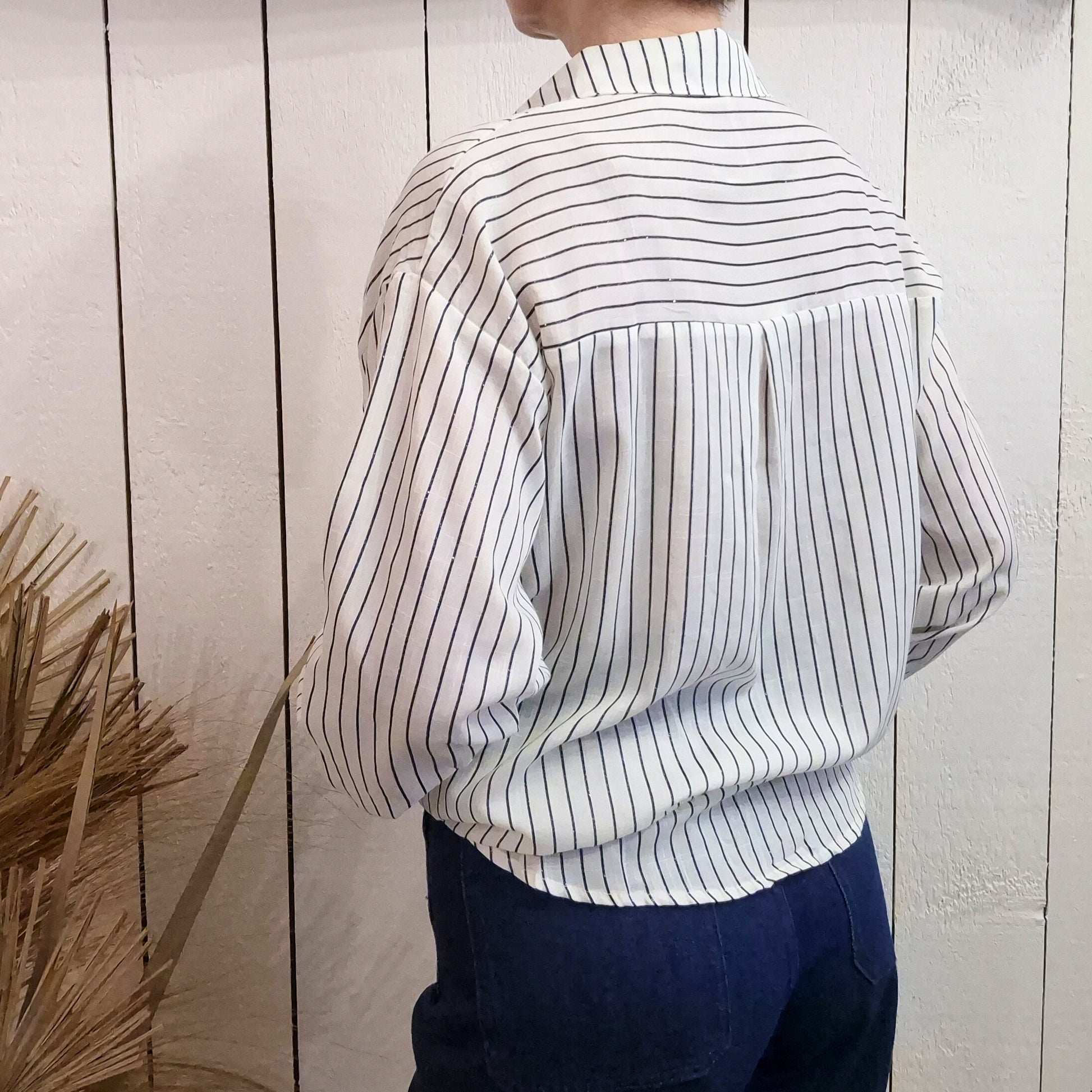 Découvrez cette élégante chemise à manches longues ornée de rayures marines pailletées qui ajoutent une touche de brillance à votre garde-robe. Parfaite pour les occasions spéciales ou pour transformer votre look quotidien, elle combine style et sophistication. Les paillettes scintillantes créent un effet lumineux captivant, tandis que la coupe classique assure un confort optimal. Idéale pour celles qui aiment se démarquer avec élégance et confiance.