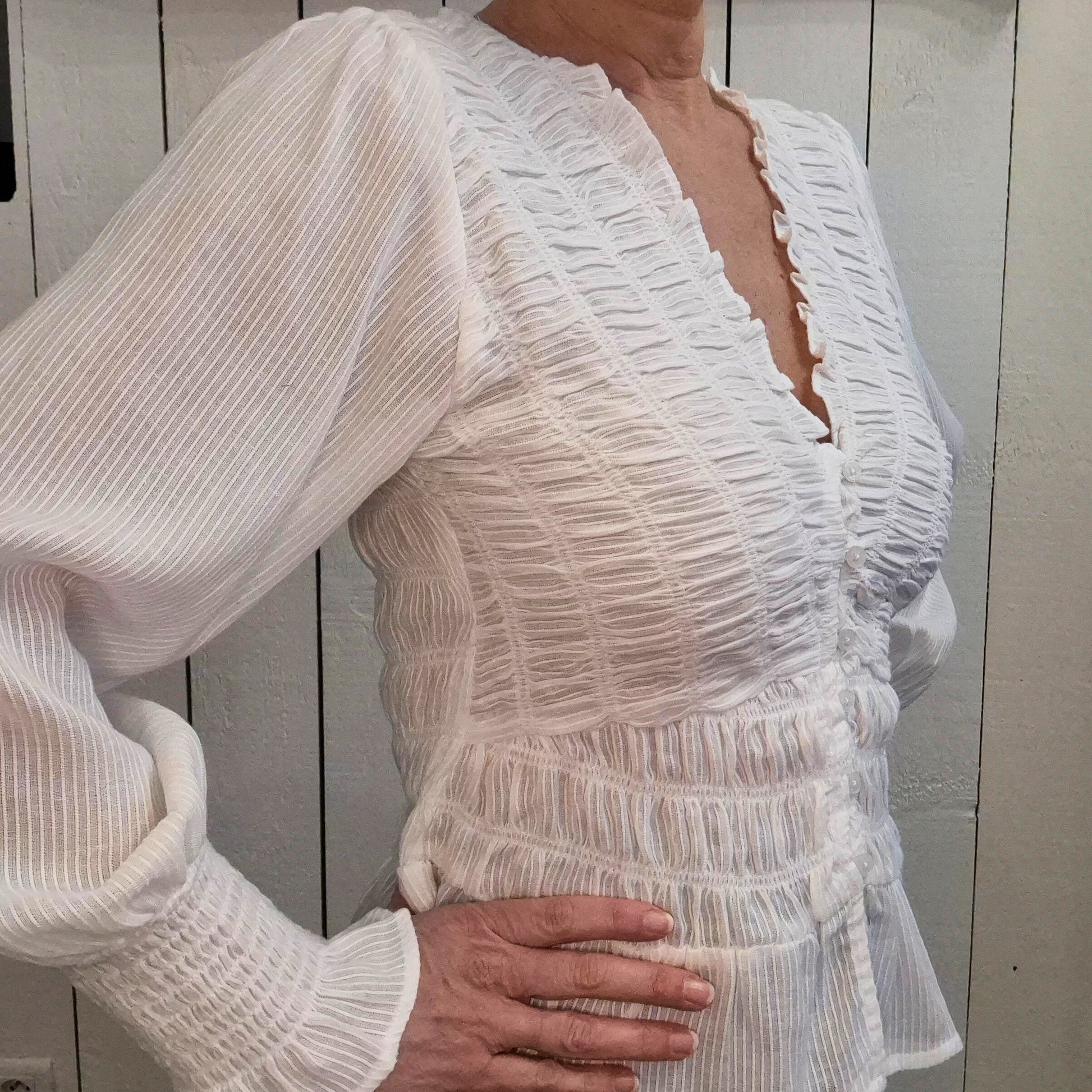 Enfilez cette chemise aux manches longues pour un style à la fois confortable et raffiné. Confectionnée en 100% coton, elle respire avec vous tout au long de la journée. Le détail froncé élastique crée une silhouette harmonieuse qui s'adapte à votre morphologie. Polyvalente et intemporelle, elle devient rapidement votre pièce préférée pour tous les moments du quotidien.