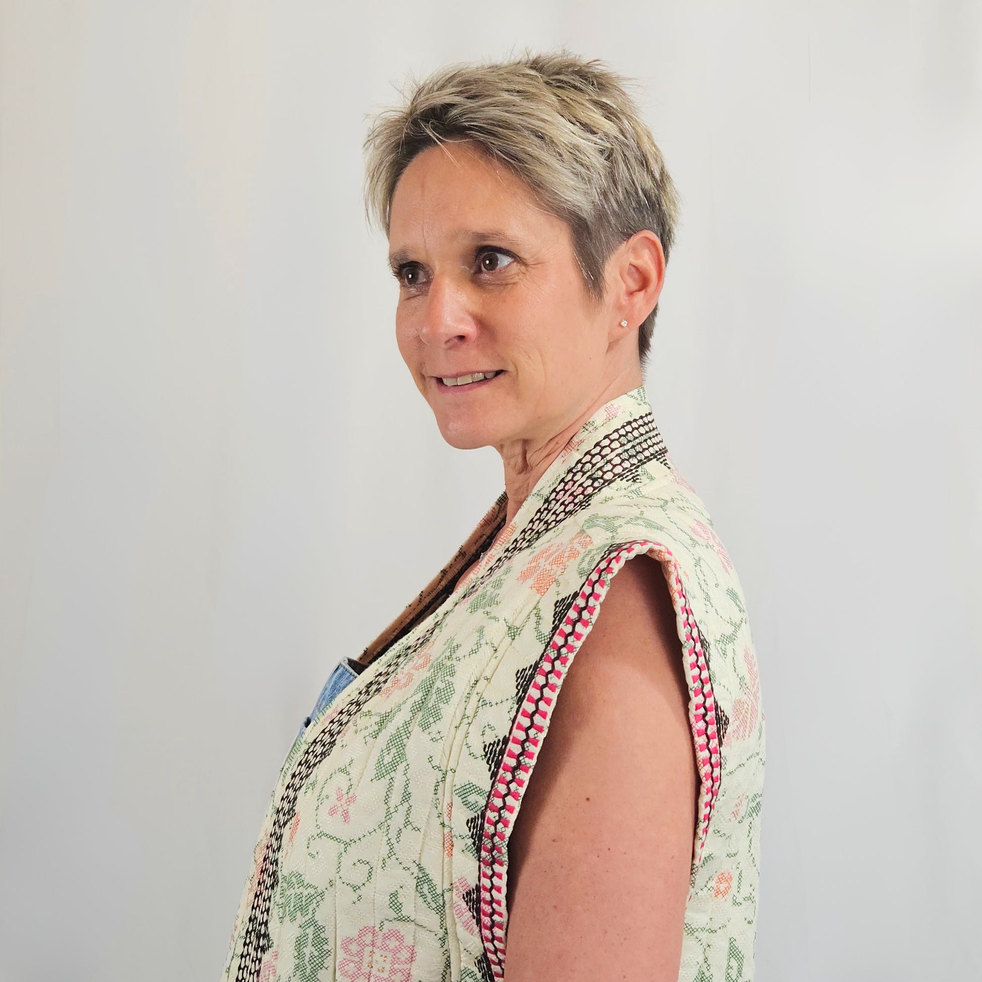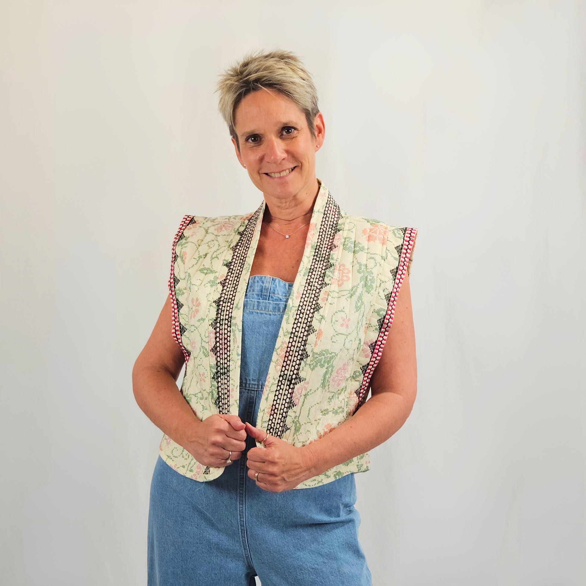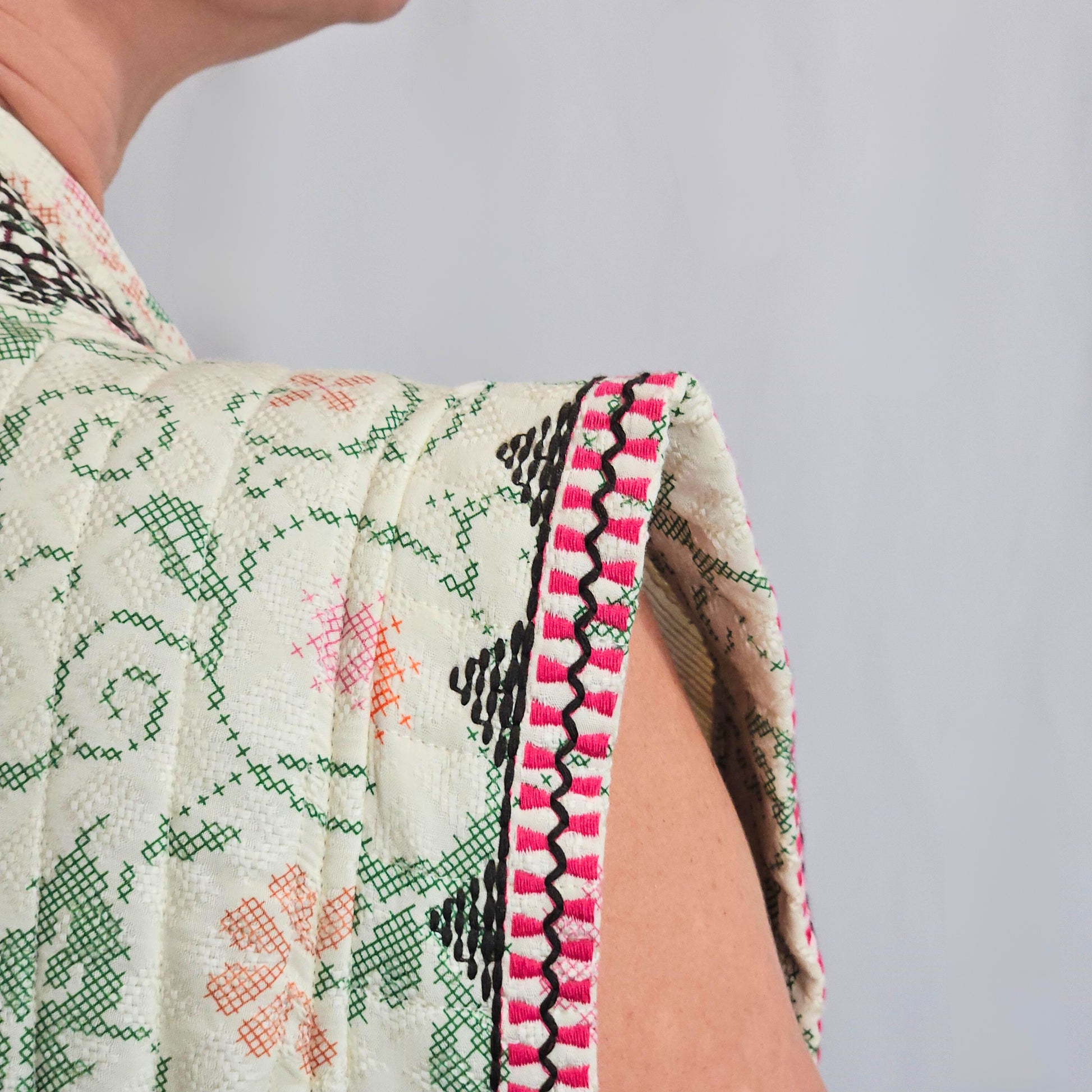Notre gilet sans manches célèbre l'esthétique bohème avec ses broderies minutieuses qui capturent l'âme de l'artisanat traditionnel. Sa conception légèrement matelassée vous enveloppe de douceur sans alourdir votre silhouette. Une pièce versatile qui apporte caractère et chaleur à vos tenues, parfaite pour exprimer votre personnalité libre et créative.