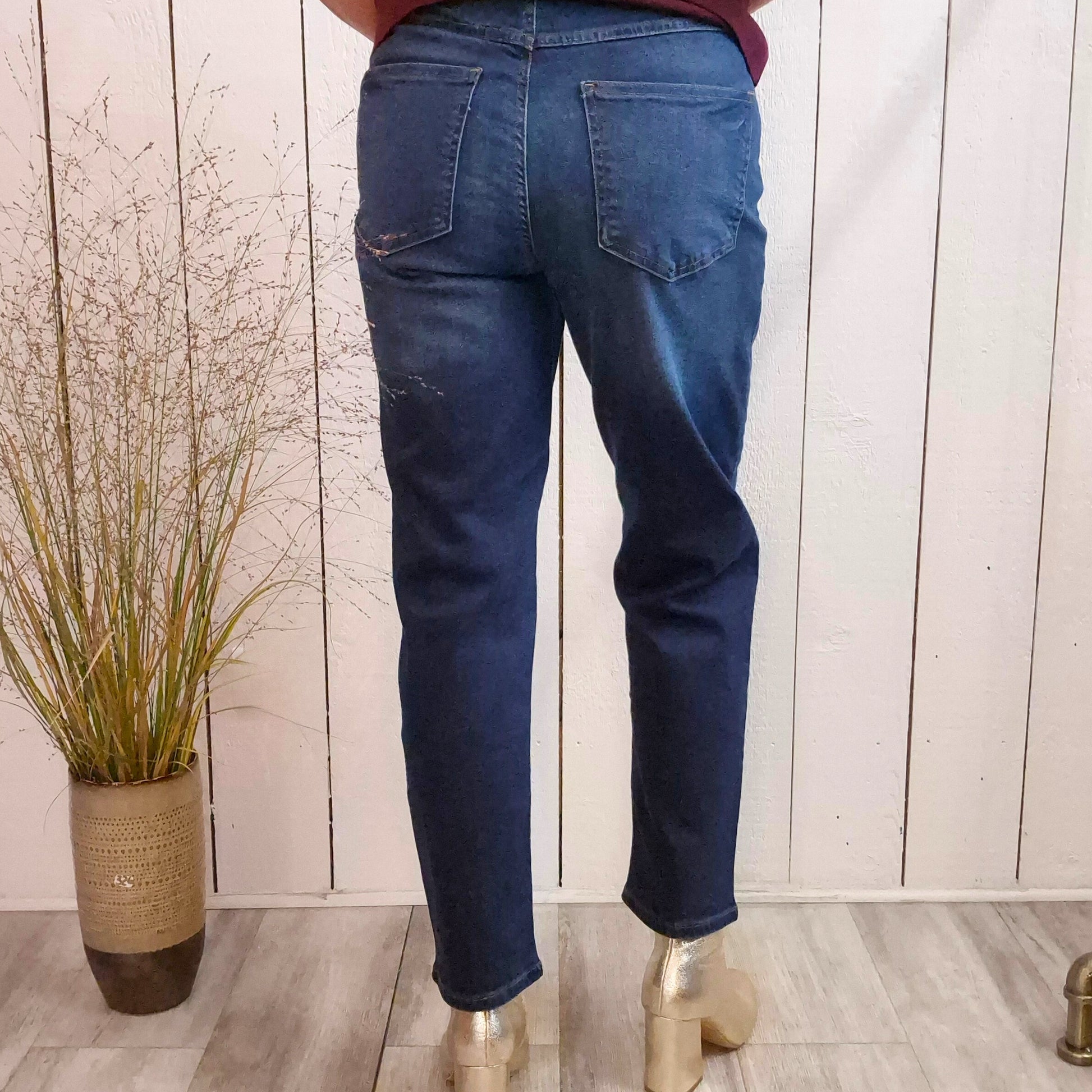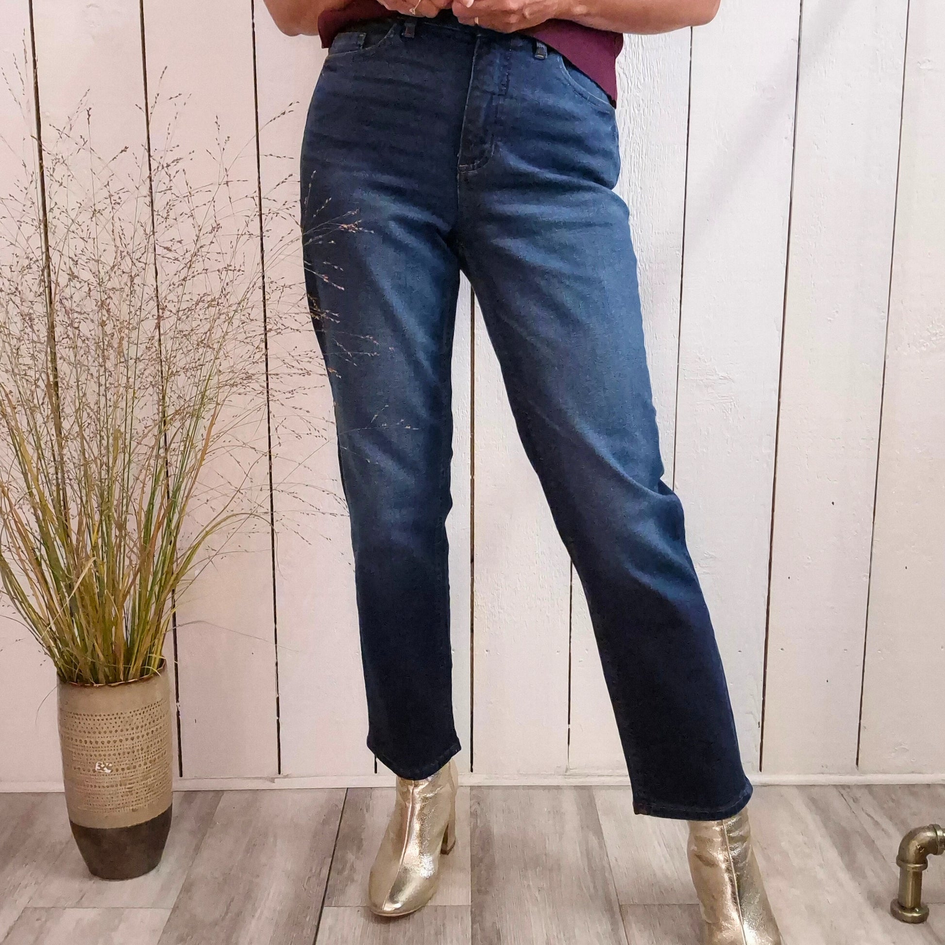 Ce jean dark blue coupe droite à longueur cheville offre un style classique et confortable. Doté de cinq poches pratiques et d’une fermeture éclair avec bouton, il combine fonctionnalité et facilité d’usage au quotidien. Sa coupe droite assure une silhouette élégante tout en garantissant un confort optimal. Parfait pour accompagner vos tenues décontractées ou plus habillées en toute simplicité.