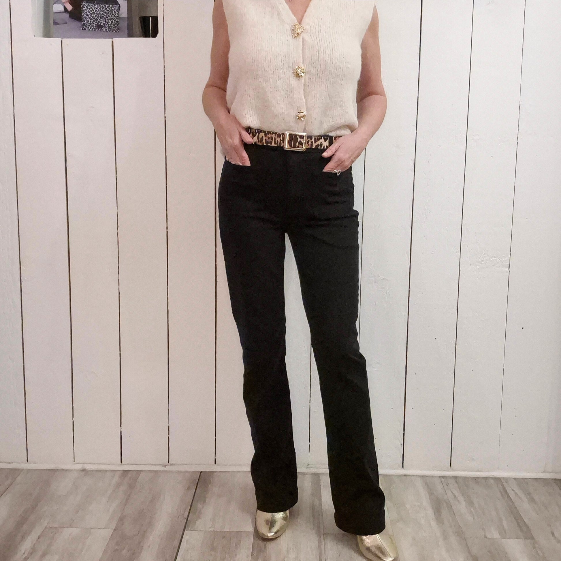Jean évasé incontournable pour un style rétro et intemporel. Coupe flatteuse qui épouse les hanches avant de s'évaser à partir du genou, pour une silhouette élancée. Quatre poches pratiques pour ranger vos essentiels au quotidien. Parfait pour créer des looks casual chic ou bohème, ce jean s'adapte à tous vos styles et occasions.