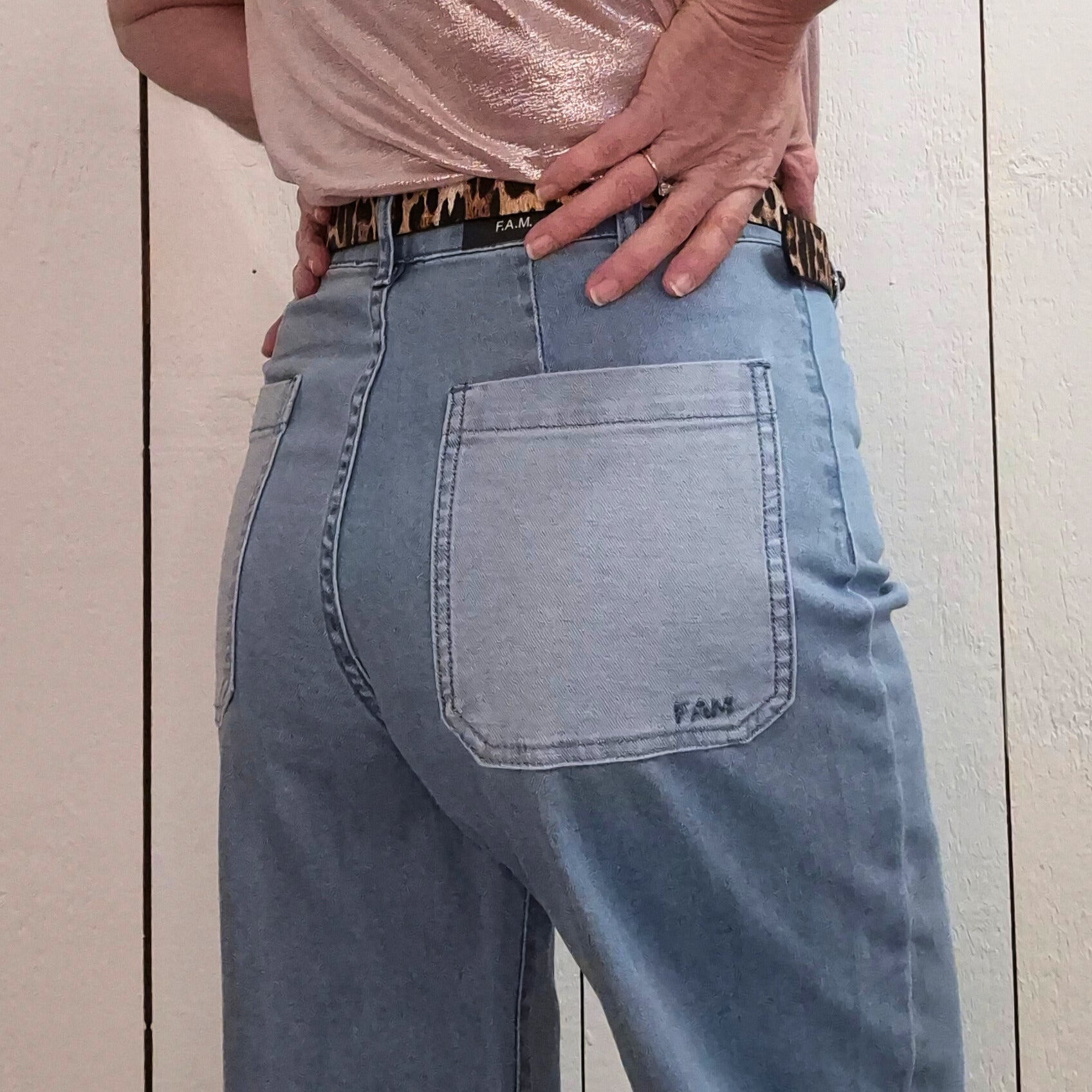 Jean évasé à taille haute qui épouse vos courbes avec élégance. Ses deux poches bi-color ajoutent une touche de style contemporain à ce basique incontournable. Confortable et flatteuse, cette pièce se porte facilement du jour au soir pour un look décontracté ou plus habillé. Un incontournable de la garde-robe qui vous met en valeur à chaque port.
