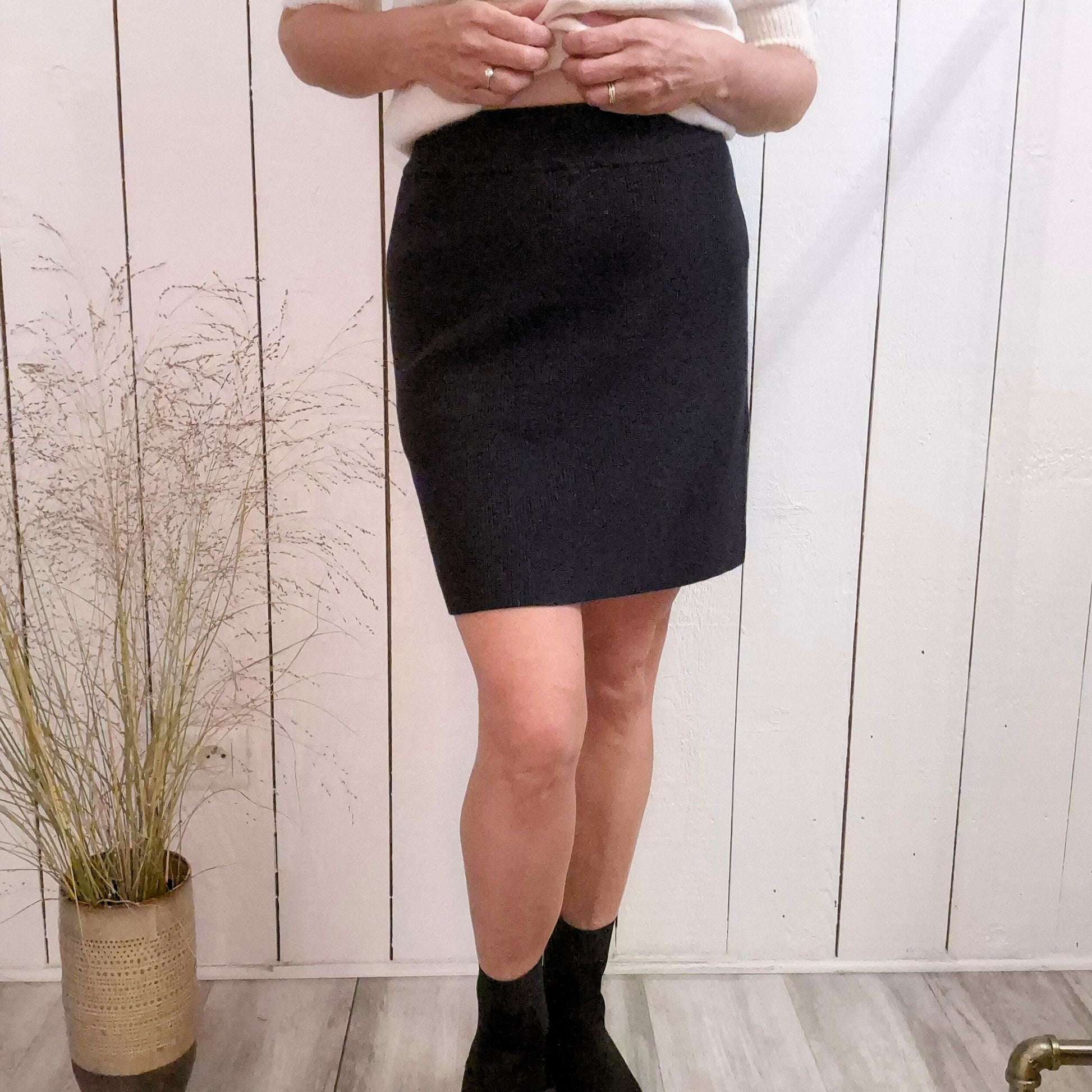 Cette jupe courte en maille côtelée extensible offre un confort ajusté et une grande liberté de mouvement. Sa texture douce et légèrement élastique s’adapte à toutes les silhouettes pour un look à la fois élégant et décontracté. Idéale pour accompagner vos tenues du quotidien avec style et aisance.