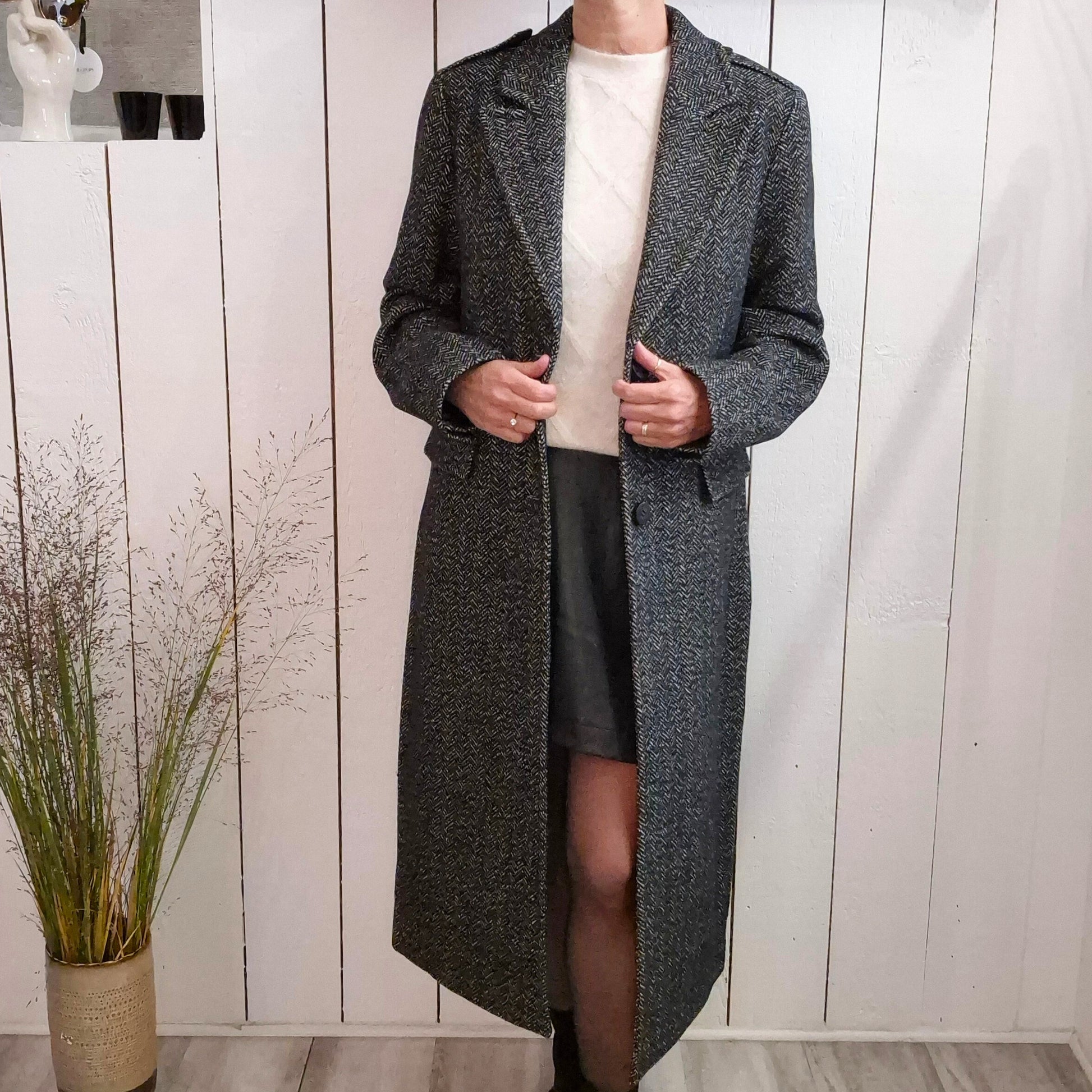 Ce manteau long, doté de deux poches pratiques, vous offre chaleur et confort grâce à sa composition incluant 12 % de laine. Idéal pour affronter les journées plus fraîches, il combine élégance et fonctionnalité pour un usage quotidien.
