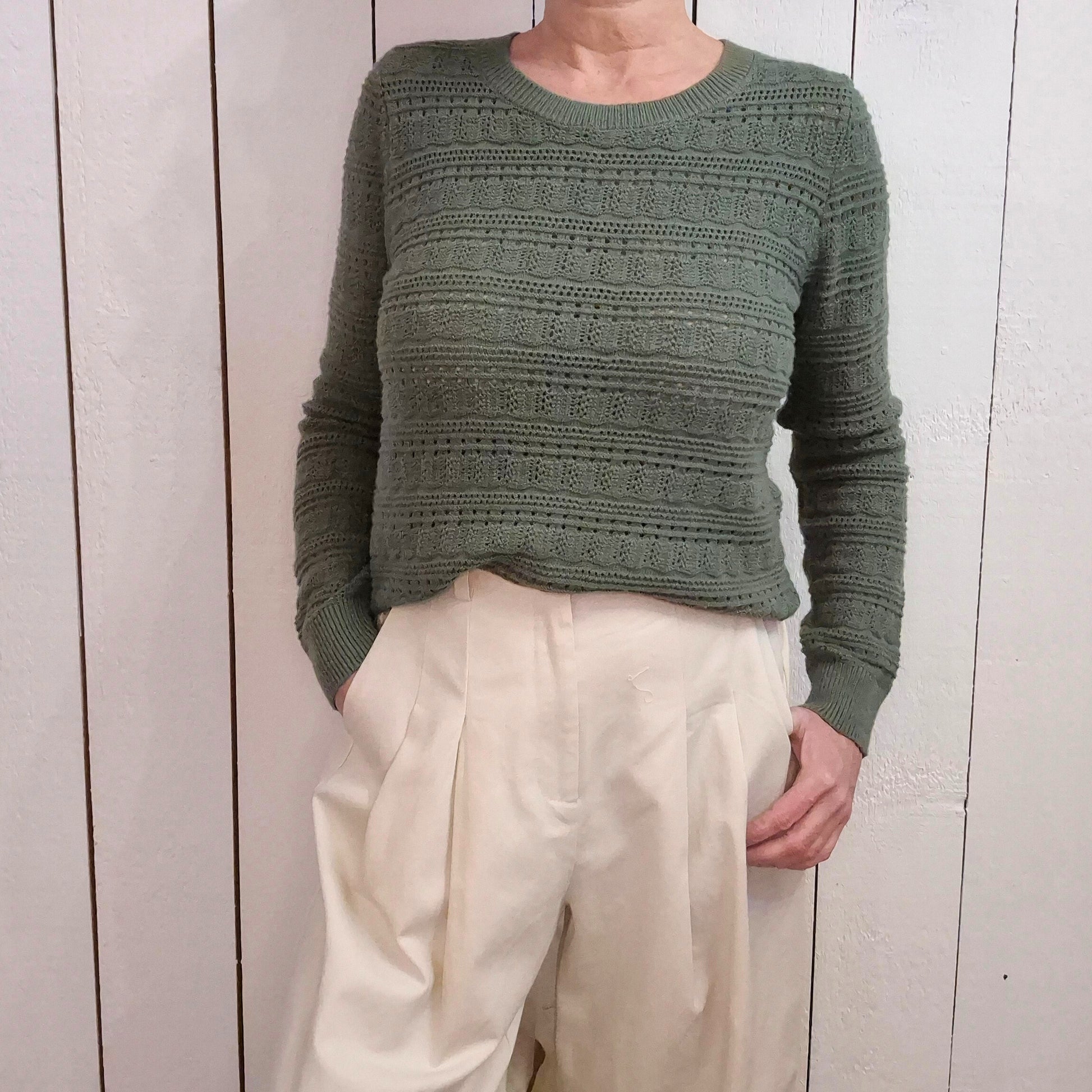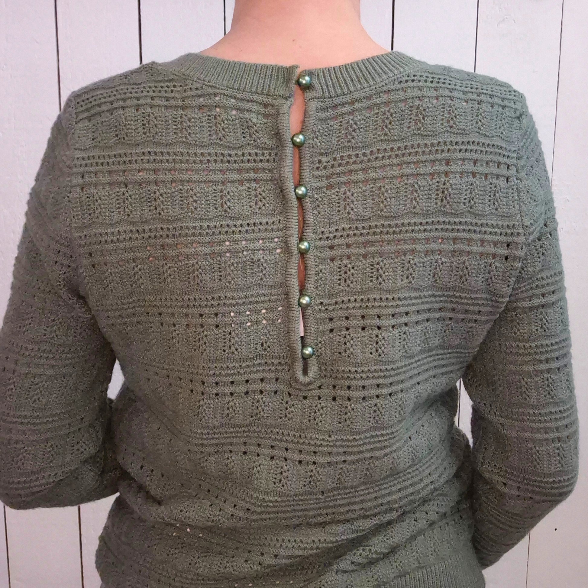 Pull manches longues en tricot ajouré qui respire légèreté et élégance. Composé de 10% laine pour une douceur naturelle et un confort optimal, il se distingue par ses détails raffinés : un dos orné de boutons nacrés qui ajoutent une touche de sophistication. Parfait pour les journées où vous souhaitez allier style et bien-être, ce pull polyvalent s'adapte à vos envies de look chic et intemporel.