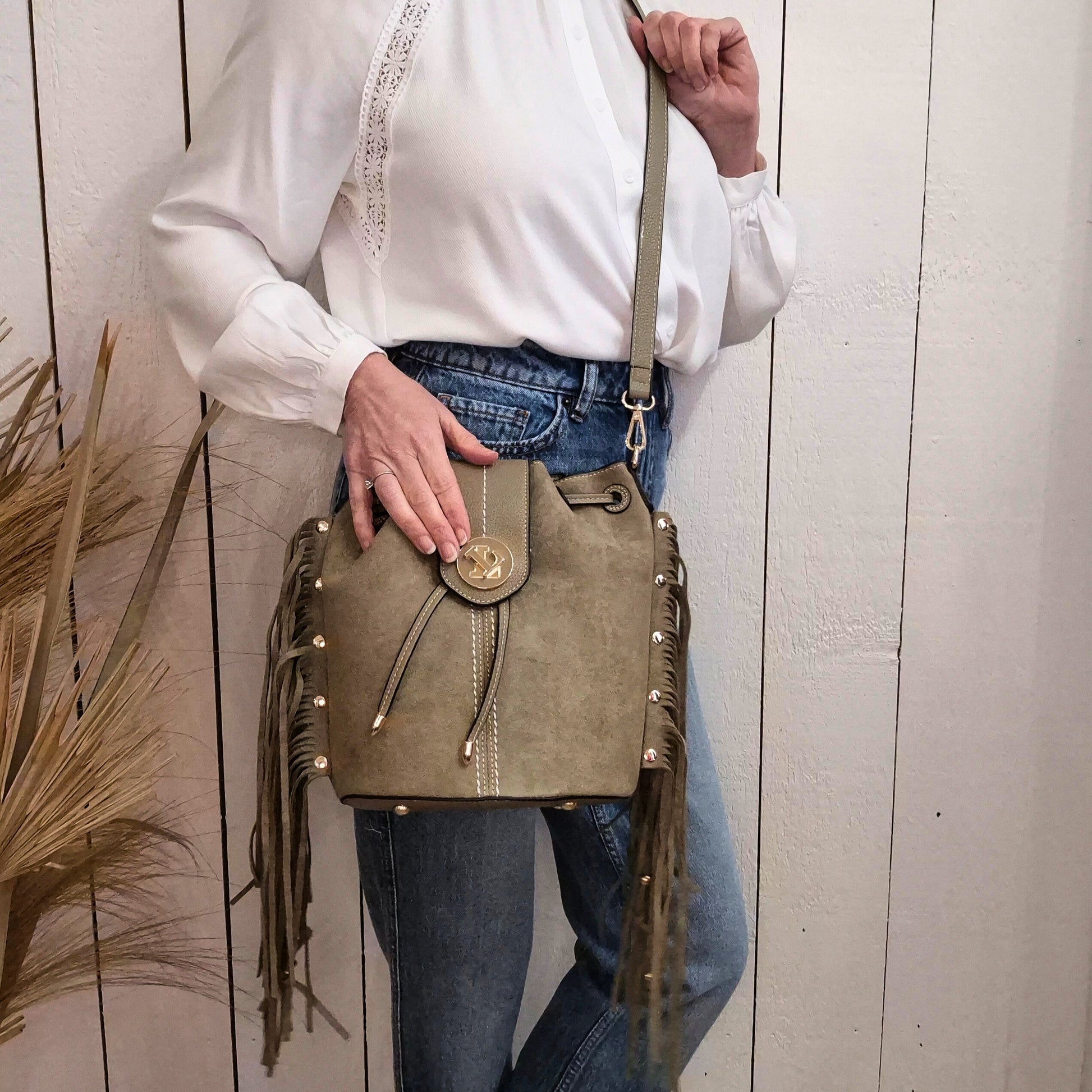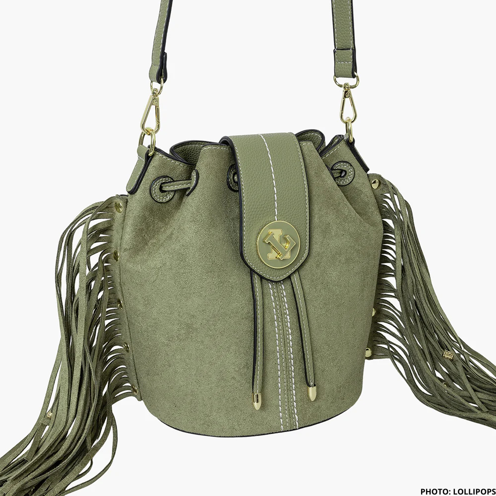 Laissez-vous séduire par ce sac seau bi-matière aux finitions sophistiquées. Combinant l'effet nubuck doux au simili cuir moderne, il se distingue par ses franges bijoutées amovibles qui ajoutent une touche de glamour instantanée. Sa bandoulière réglable et amovible offre une flexibilité totale : portez-le selon votre envie du jour. Transformable et élégant, ce sac devient votre allié pour exprimer votre personnalité avec assurance et style.