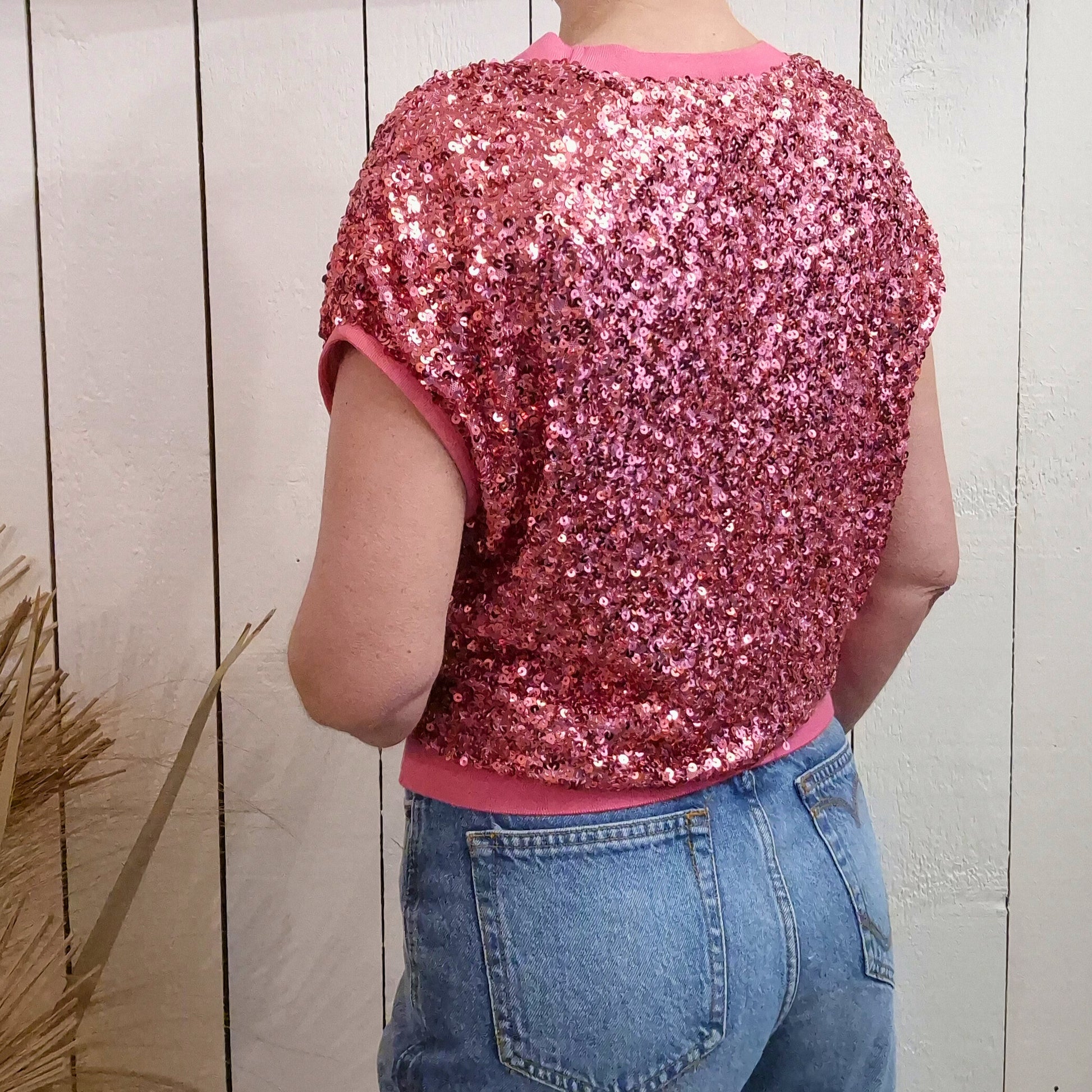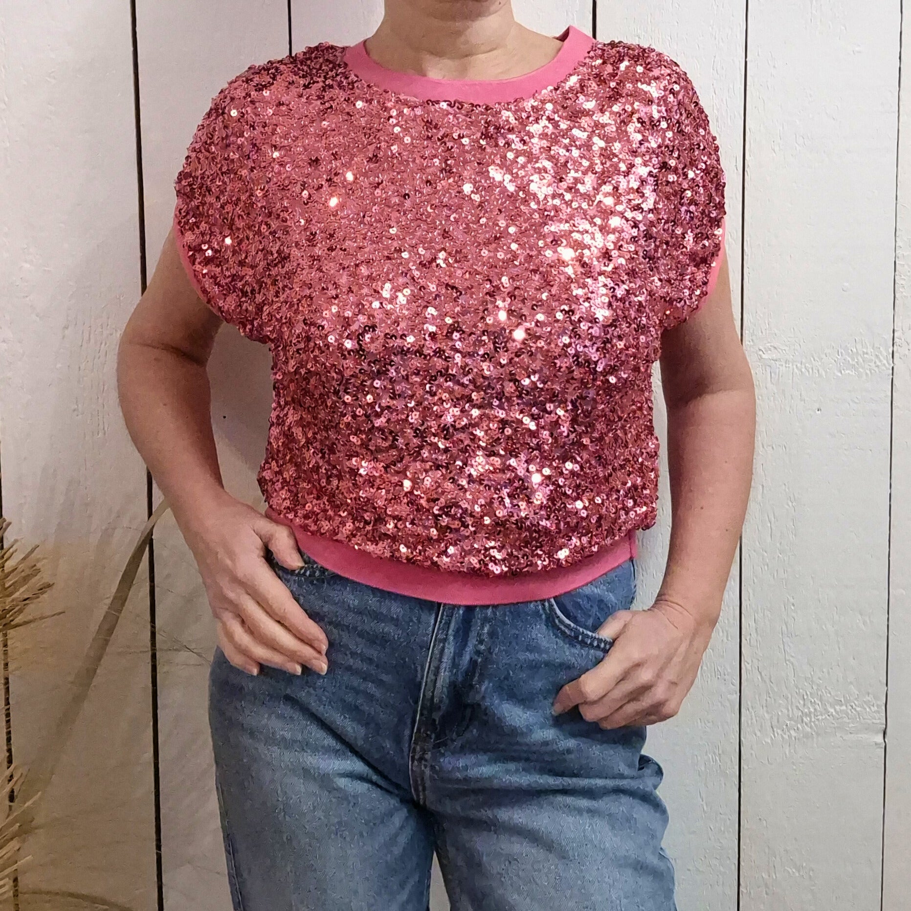 Brillez de mille feux avec ce top à manches courtes orné de sequins scintillants. Parfait pour les occasions spéciales ou pour ajouter une touche de glamour à votre garde-robe, ce vêtement capture la lumière à chaque mouvement. Le tissu confortable épouse délicatement votre silhouette tandis que les sequins créent un effet dazzling irrésistible. Idéal pour les soirées festives, les événements ou simplement pour vous sentir confiante et rayonnante au quotidien.